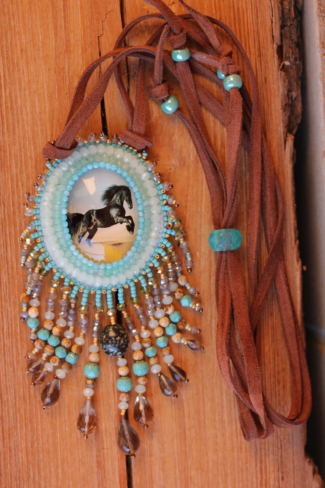 | una collana in stile selvaggio/elegante: chips di turchese su cabochon di lava. |