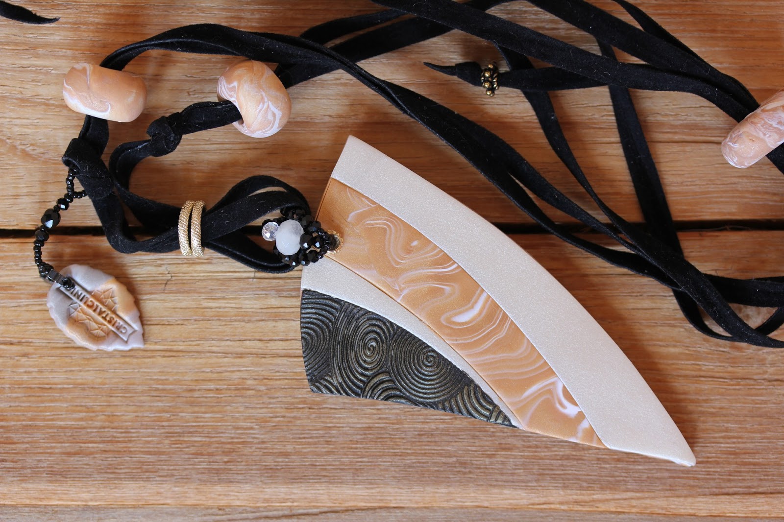 La collezione è realizzata in Polymer Clay che ho modellato a mano e decorato con perline e pietre dure.