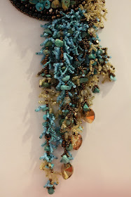 Barbara, insegnante assoluta e specialissima della tecnica delll'Embroidery ha preparato una collana da vero concorso interplanetario! Tre cabochon di onice nera abbinati a chips di turchese di varie sfumature. Il punto focale del gioiello è la stupenda cascata di turchesi e cristalli.