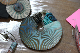 E' stato bellissimo vedere con quanta passione e quanta delicatezza , con movimenti perfetti, Jana accarezza la pasta polimerica fino a sottometterla alle tecniche più rischiose. Sfoglie di pasta sottilissime, accostamenti di colori insoliti, effetti "mosaico". Basta guardare i suoi gioielli…